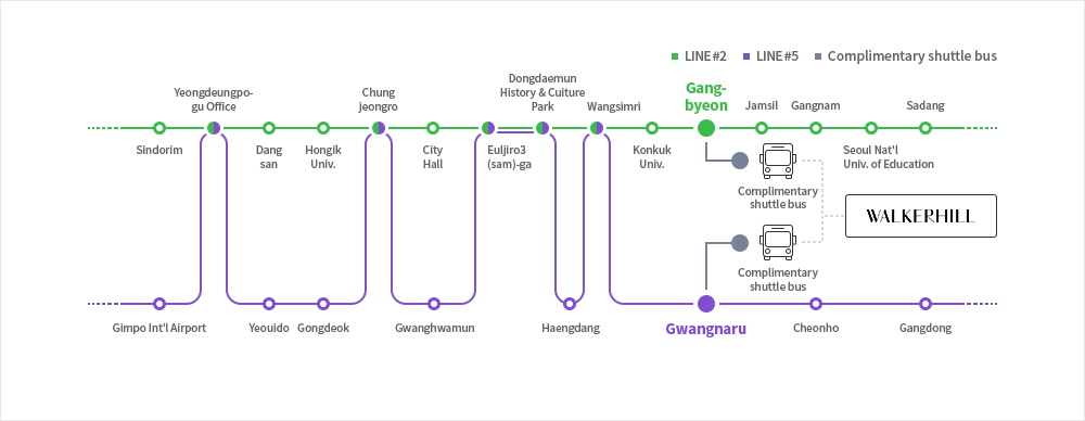 - Location of Complimentary Shuttle pick-up service via Gangbyeon Station (Line #2)